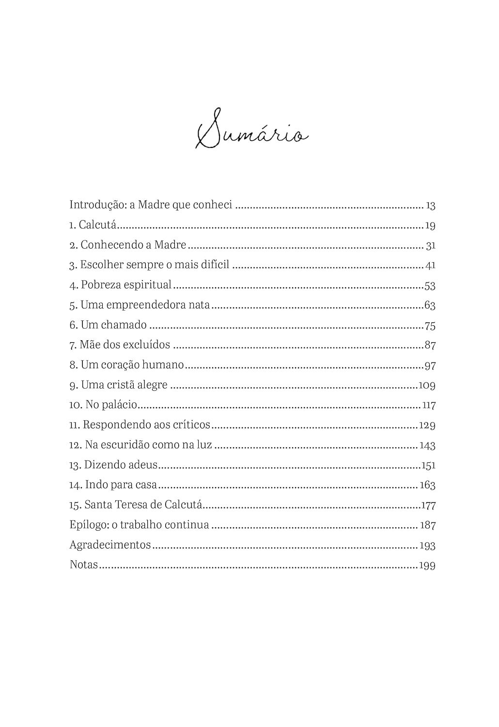 Impasses com governos, traições e lutas intermináveis contra a apropriação da imagem e do bom nome da Madre são algumas das questões que o autor compartilha com o leitor. Mas o mais revelador é conhecer a Madre como Jim a conhecia – não a santa perfeita e intocável que vem à mente das pessoas, mas o ser humano real, que tinha amigos, gostava de chocolate, contava piadas e, eventualmente, se zangava.